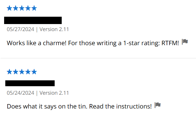 Warning! Those who fail to read the copious documentation provided tend to look really silly when making a bad review (and we call you out by reply).