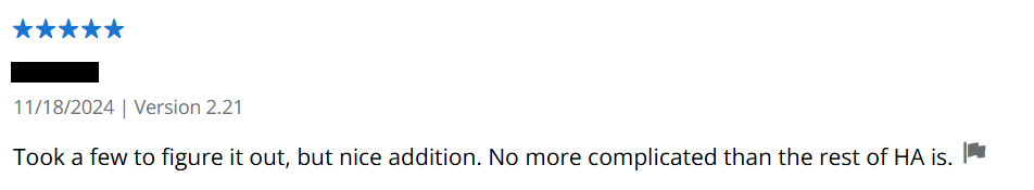 “If you were expecting the setup to be like a Windows programme using points & clicks then you will sadly be disappointed. As the instructions make quite clear, this app is aimed at people who are comfortable configuring Home Assistant. If you are not happy writing a JSON text file, you may need to look for another application.”
